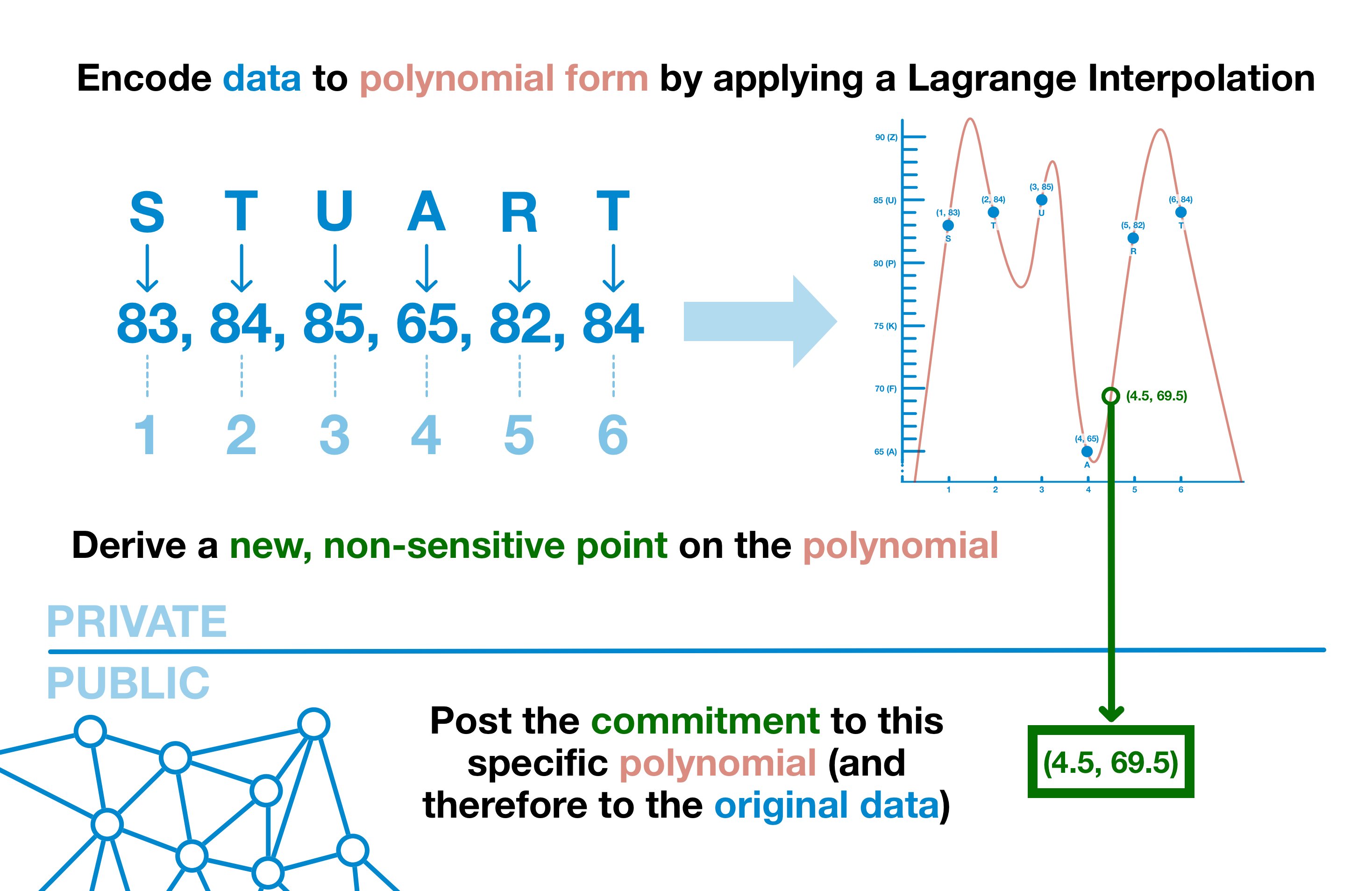 So here's the idea: transform our data into a polynomial and provide the public with an evaluation value for a non-sensitive part of the curve.