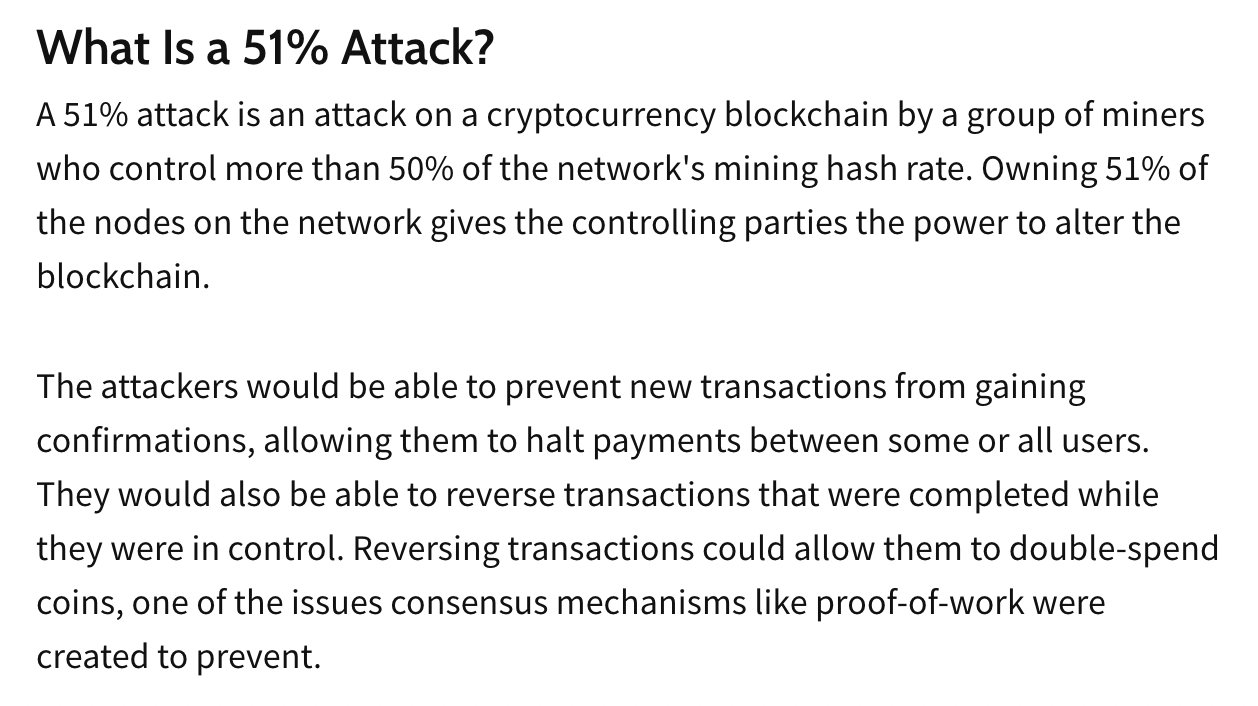 Attack method: rent GPUs to out-mine the existing miners; control the chain long enough to make changes.